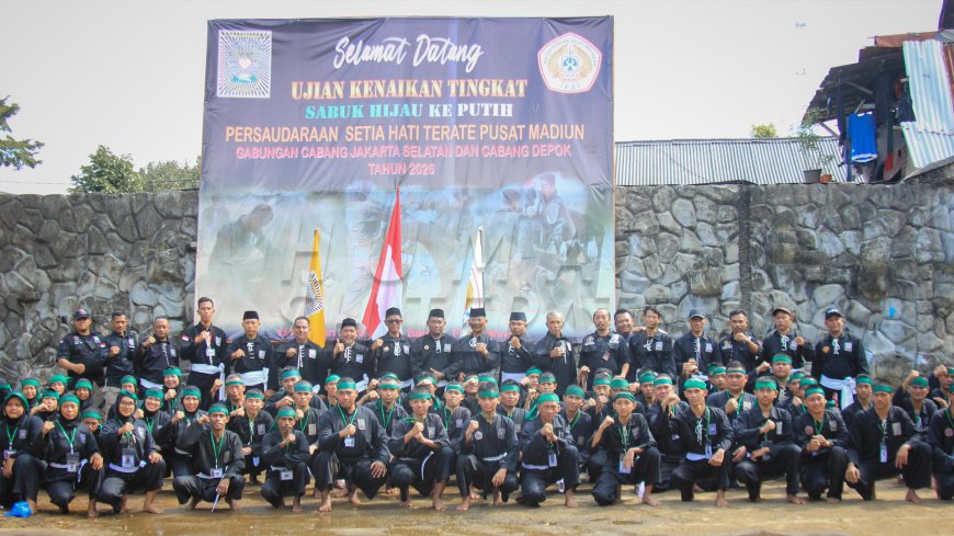 Jakarta – Ujian Kenaikan Tingkat (UKT) sabuk hijau ke sabuk putih Persaudaraan Setia Hati (SH) Terate digelar secara gabungan oleh Cabang Jakarta Selatan dan Cabang Depok, Minggu (15/2/2026).